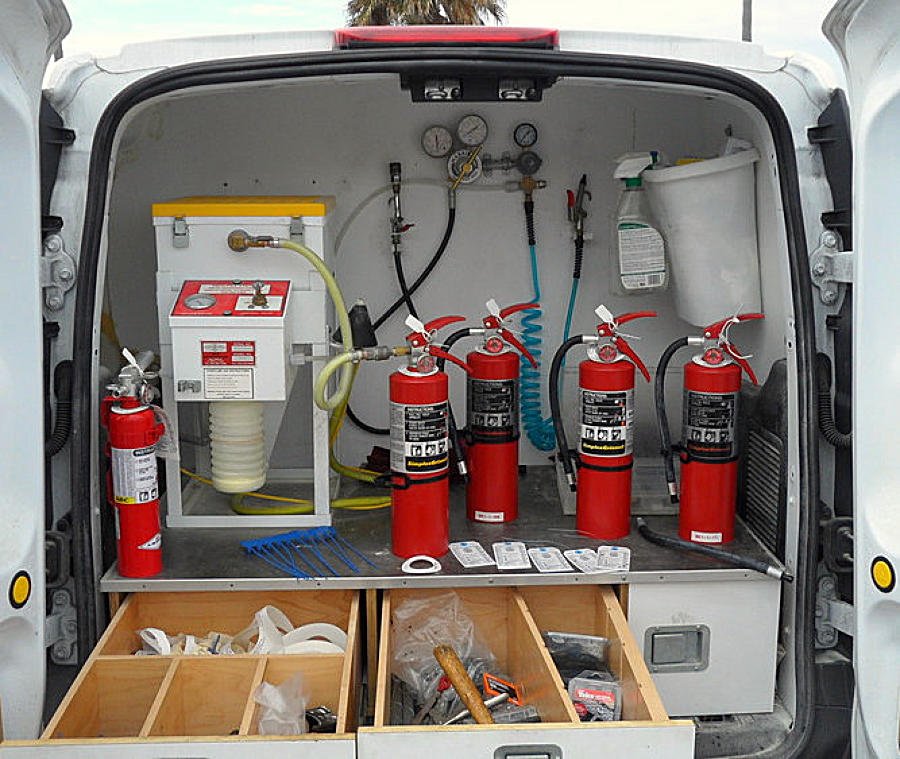 Its Transparent and its in front of you, the technicians working in the van are trained and certified to refill and recharge extinguishers, ensuring that the work is done safely and effectively.